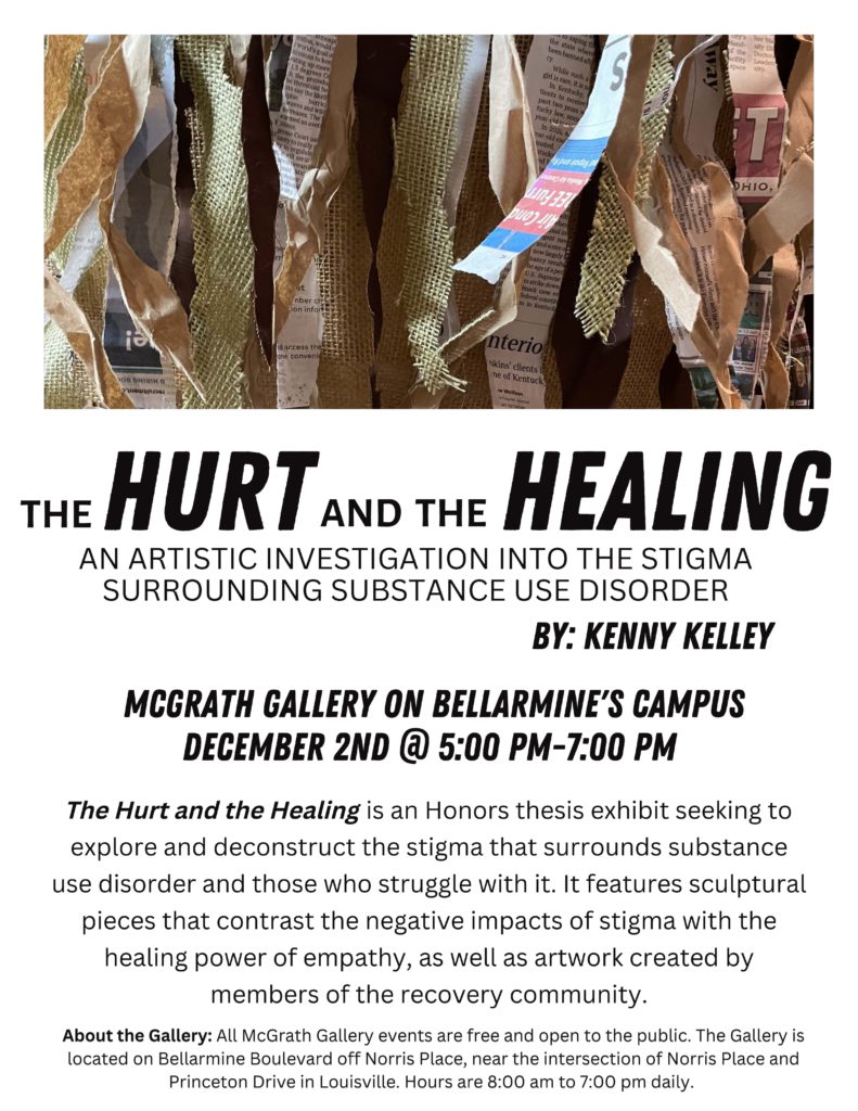 Opening Reception for The Hurt and The Healing: December 2nd, 5-7 p.m. at Bellarmine University’s McGrath Gallery. Artwork will be available to view through December 16th.